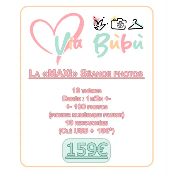 La séance photo "Maxi" est la séance idéale pour une première fois surtout si vous désirez immortaliser plusieurs moments en famille.